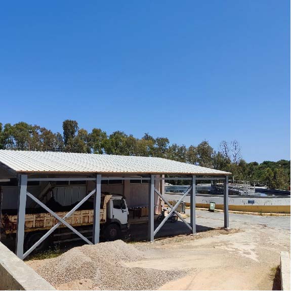 3. Η κατασκευή κεκλιμένου στεγάστρου κατ’ επέκταση του υφιστάμενου κτιρίου αφυδάτωσης, όπου περιλαμβάνονται: